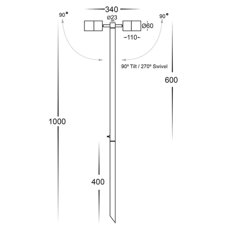 Tivah Black 12V TRI Colour Double Adjustable LED Bollard Spike Light